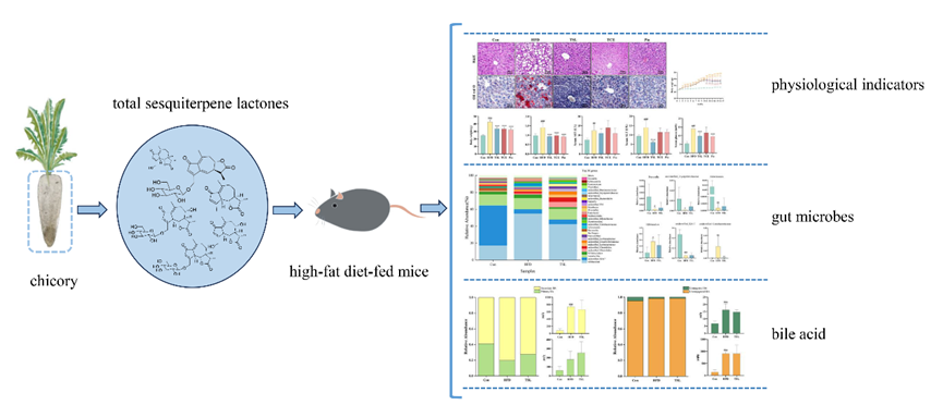 近日,永盈彩票陈剑研究员课题组在食品科学著名期刊《Food & Function》(中国科学院一区TOP期刊,5年IF=5.6)上发表了题为“Amelioration of metabolic syndrome in high-fat diet-fed mice by total sesquiterpene lactones of chicory via modulation of intestinal flora and bile acid excretion”的研究论文,探究了菊苣总倍半萜内酯缓解代谢综合征的作用机制。