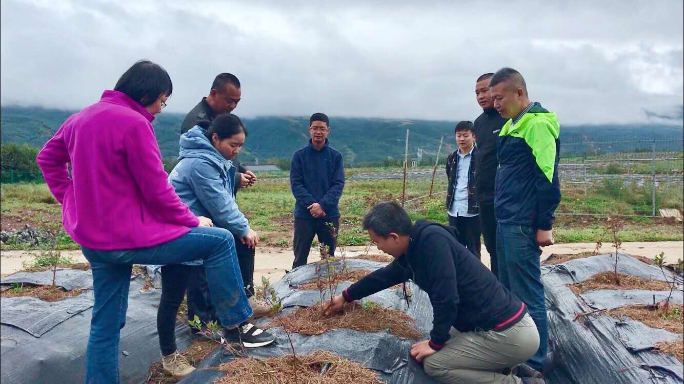 於虹研究员和曾其龙博士在布拖县县委常委、县政府副县长、江油前线指挥部指挥长吕勇,江油指挥部农艺专家熊瑛,布拖蓝之美公司总经理,江油指挥部主任尚召阳的陪同下,考察了布江蜀丰现代农业科技示范园和拖觉镇高原蓝莓产业示范园,并就布拖县蓝莓产业发展规划、现状和面临的问题进行了分析,从品种选择、土壤选择和改良、水肥管理、病虫害防控、植株修剪等方面进行了现场培训指导。同时双方就将来技术服务和科技合作进行了充分沟通,从而更好的促进蓝莓产业发展,助力当地群众实现稳定脱贫。