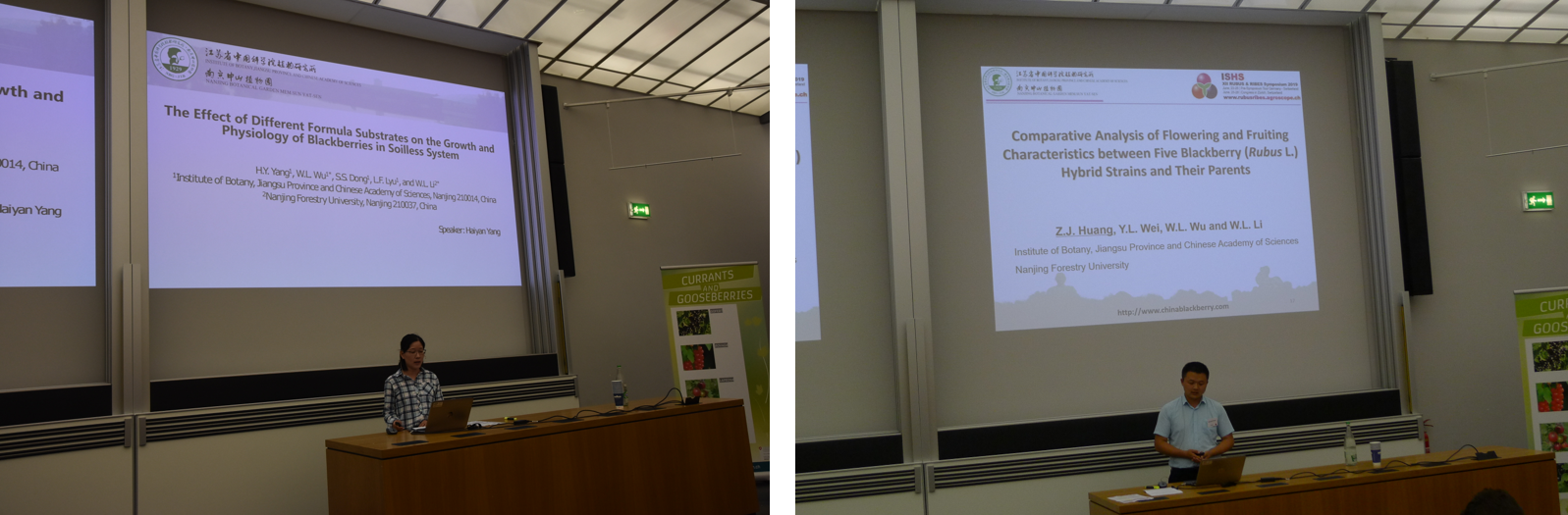 我所参会人员向大会提交了3篇会议论文,并在研讨会上分别做了“宁植3号黑莓新品种选育”、 “5个黑莓杂交品系及其亲本开花结实性状的观察比较”、 “不同基质无土栽培对黑莓生长和生理的影响”的专题报告,受到与会专家的好评。