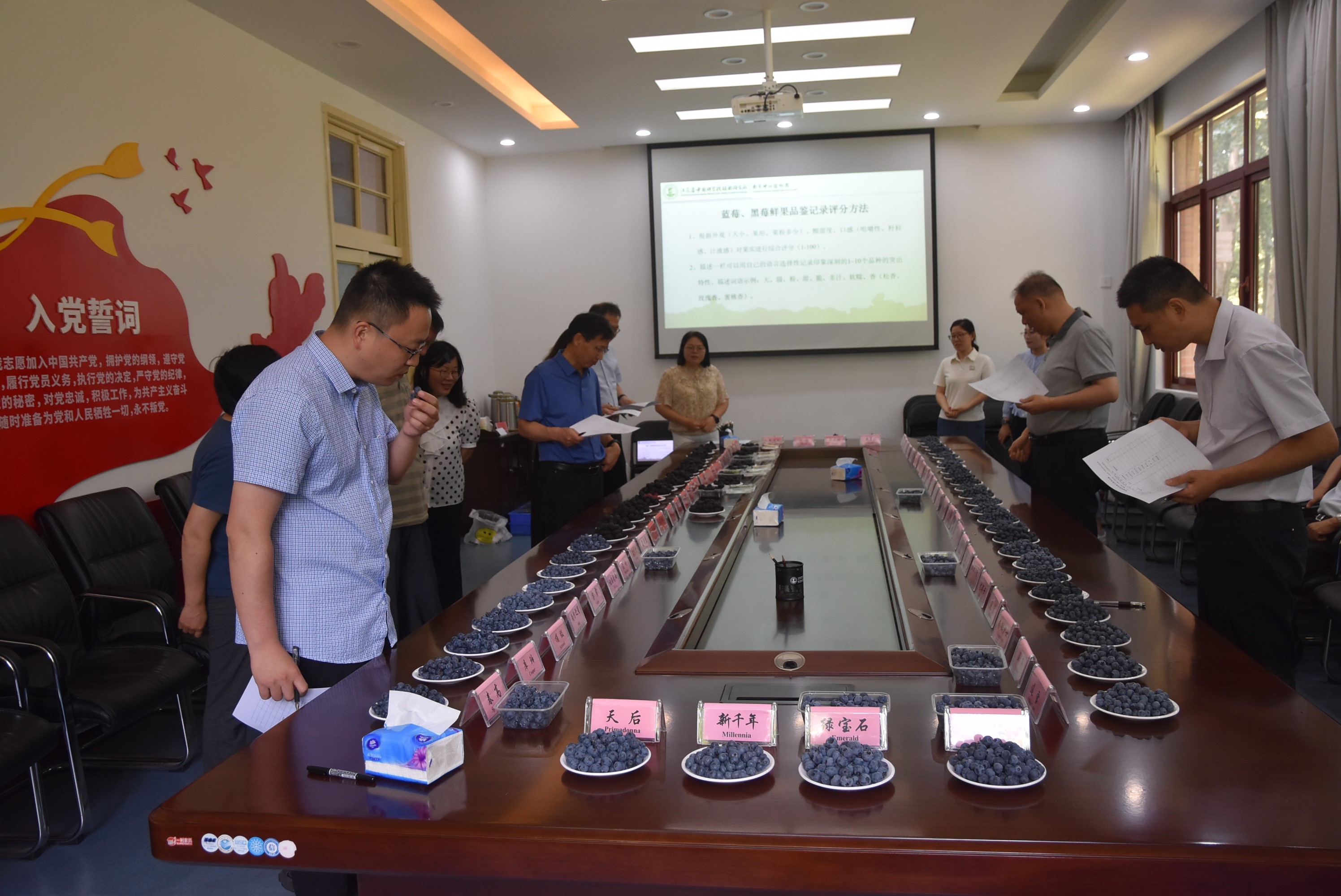 为推进不同用途黑莓、蓝莓品种的筛选与良种推广,同时展示黑莓、蓝莓种质资源及选育的新品种,我所果树研究中心黑莓研究与利用项目组6月12日举办了“2023年早熟黑莓、蓝莓品鉴会”,所长姚东瑞、党委书记宇文扬、纪委书记金健、副所长汪仁出席品鉴活动,所管理部门同志参加。