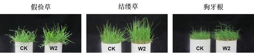 图1 阿氏芽孢杆菌W2对三种草坪草的促生作用
