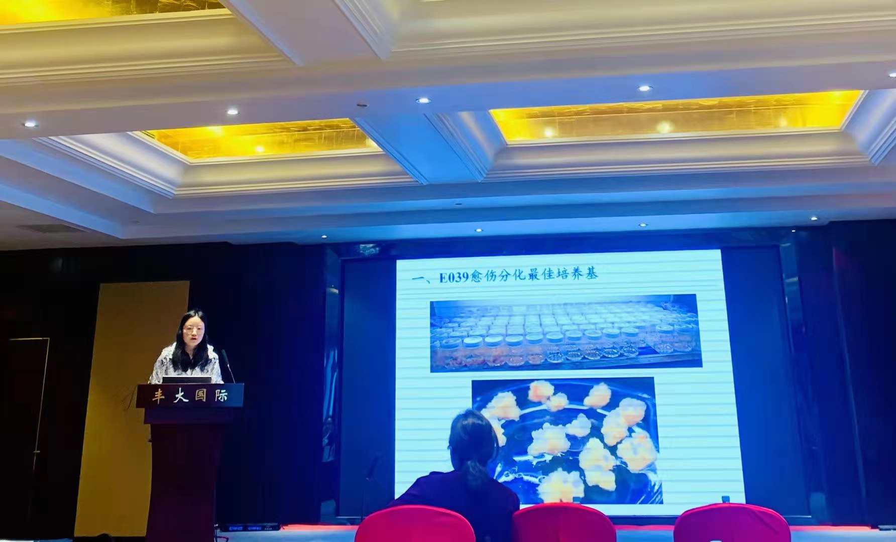 本次会议分为9个大会报告、9个专题论坛及1个研究生论坛,我所刘建秀研究员在“草坪与运动场”分会场作了题为“我国本土高抗优质主要暖季型草坪草种质发掘与创新利用”的学术报告,郭海林研究员在“草类植物育种与设计”分会场作了题为“结缕草属植物遗传育种研究进展”的学术报告,2018级硕士研究生王蕊在研究生论坛作了“农杆菌介导的假俭草遗传转化”的学术报告,均受到了与会代表的广泛关注和好评。会议期间,中心展示了6张墙报,全面介绍了近年来中心在科研和平台建设方面取得的进展。