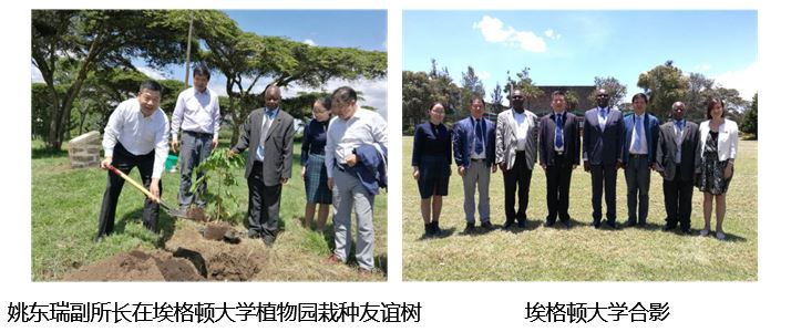 与肯尼亚埃格顿大学R.A Mwonya校长﹑埃格顿大学农学院作物园艺和土壤系刘高琼教授以及相关科研人员进行了座谈。就今后双方组织种质资源收集﹑植物多样性保护、促进生物多样性教育与认识、加强科学资源与信息共享、科技人员培训和学生联合培养等方面签订了合作战略协议。与此同时,为进一步加强双方的友好交流与合作,传承和发扬国家“一带一路”战略精神,深化友好情谊,在埃格顿大学的精心策划下,出访科研人员在肯尼亚埃格顿大学的植物园内种下友谊树。