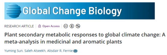 近日,鸢尾甜菊组在植物次级代谢响应全球气候变化的规律和机制研究中取得新进展。相关研究成果以题为“Plant secondary metabolic responses to global climate change: A meta-analysis in medicinal and aromatic plants”发表在国际权威杂志Global Change Biology(中科院一区,IF=13.21)上。鸢尾甜菊组孙玉明博士为论文第一作者,德国马克斯·普朗克分子植物生理研究所Alisdair Fernie教授为通讯作者。研究得到国家自然科学基金青年基金等项目的资助。