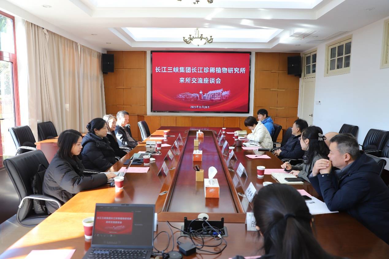 2025年11月20日,长江三峡集团长江珍稀植物研究所黄桂云所长一行来我永盈彩票考察交流。双方围绕珍稀植物保护与研究开展深入座谈。我所副所长汪仁出席交流活动。