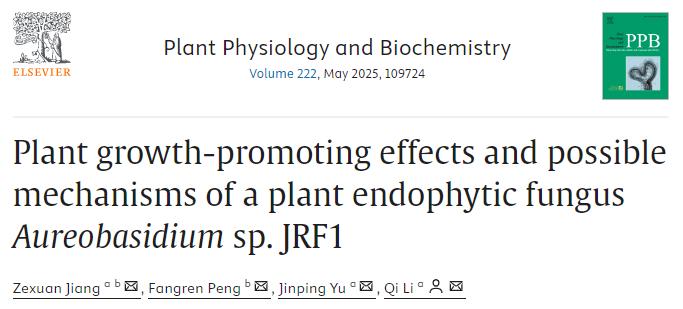 近日,永盈彩票科研人员在Plant Physiology and Biochemistry杂志发表了题为“Plant growth-promoting effects and possible mechanisms of a plant endophytic fungus Aureobasidium sp. JRF1”的研究论文,证明一株短梗霉属内生真菌JRF1能够促进植物生长,并对其促生机制做了进一步研究。