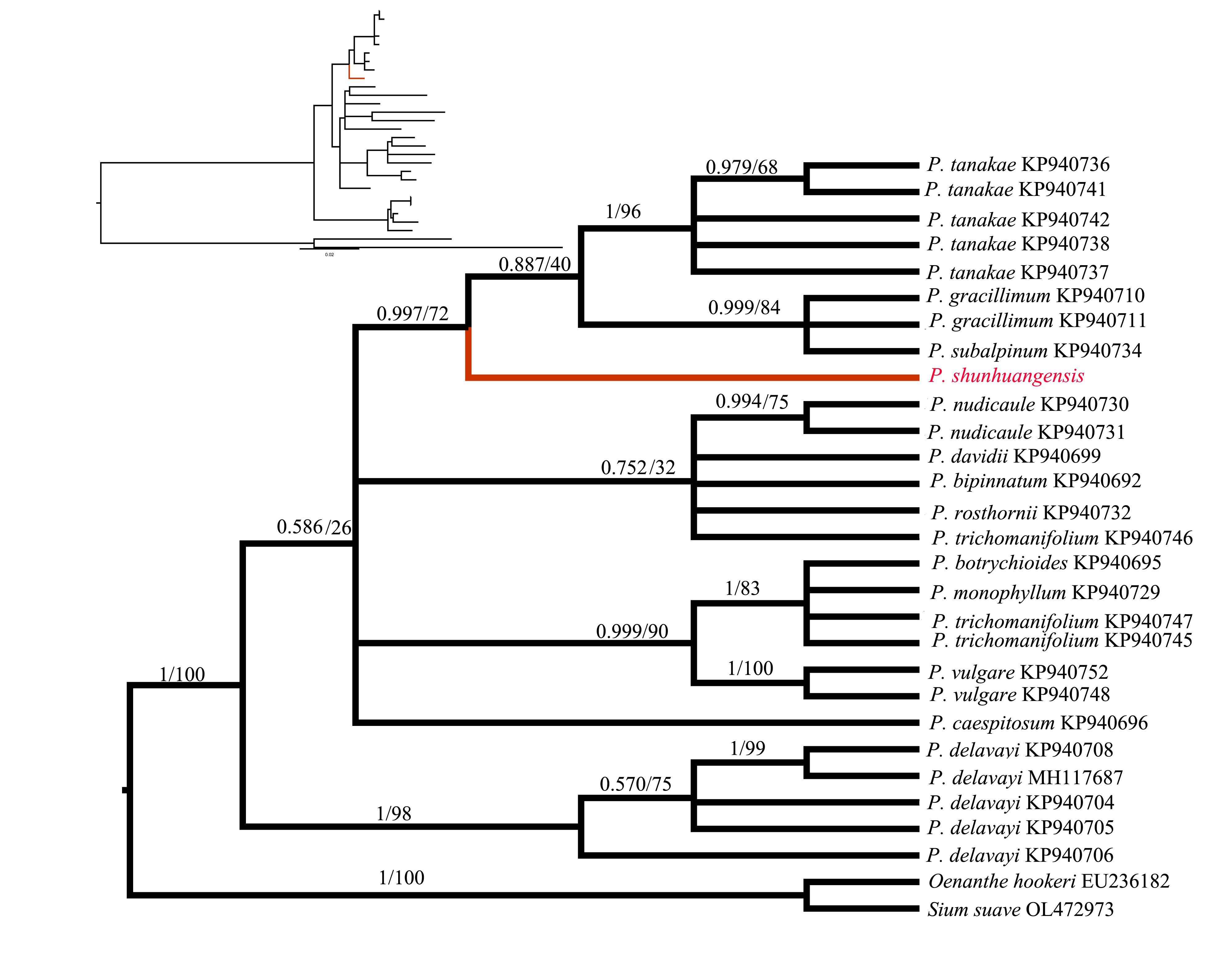 根据ITS序列推断得出的舜皇囊瓣芹系统位置