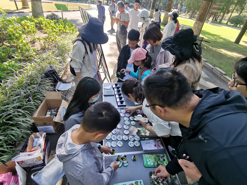 为了让游客更好地参与互动,活动现场设置了扫码答题环节。答对问题的游客可获得植物园精心准备的文创小礼品,包括珍稀濒危植物徽章、冰箱贴和明信片等。活动现场还发放了植物园多样性宣传册,让游客们可以将植物知识带回家,与家人朋友分享。
