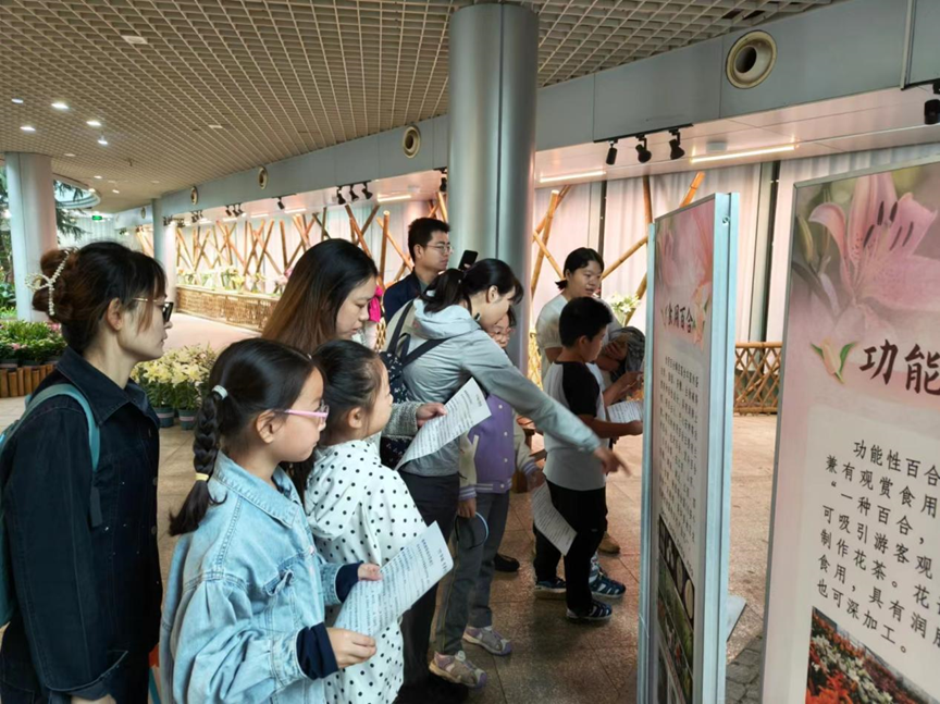 2024年10月1日上午,园艺和科普教育中心科普部开展百合文化展配套科普活动 “75华诞 百事合意”。活动免费招募了10组亲子家庭参加,他们在科普老师的带领下参观百合展,学习百合相关知识,最后还亲手制作了扭扭棒百合花。大家表示活动很有意思,既学习了知识又丰富了假期生活。