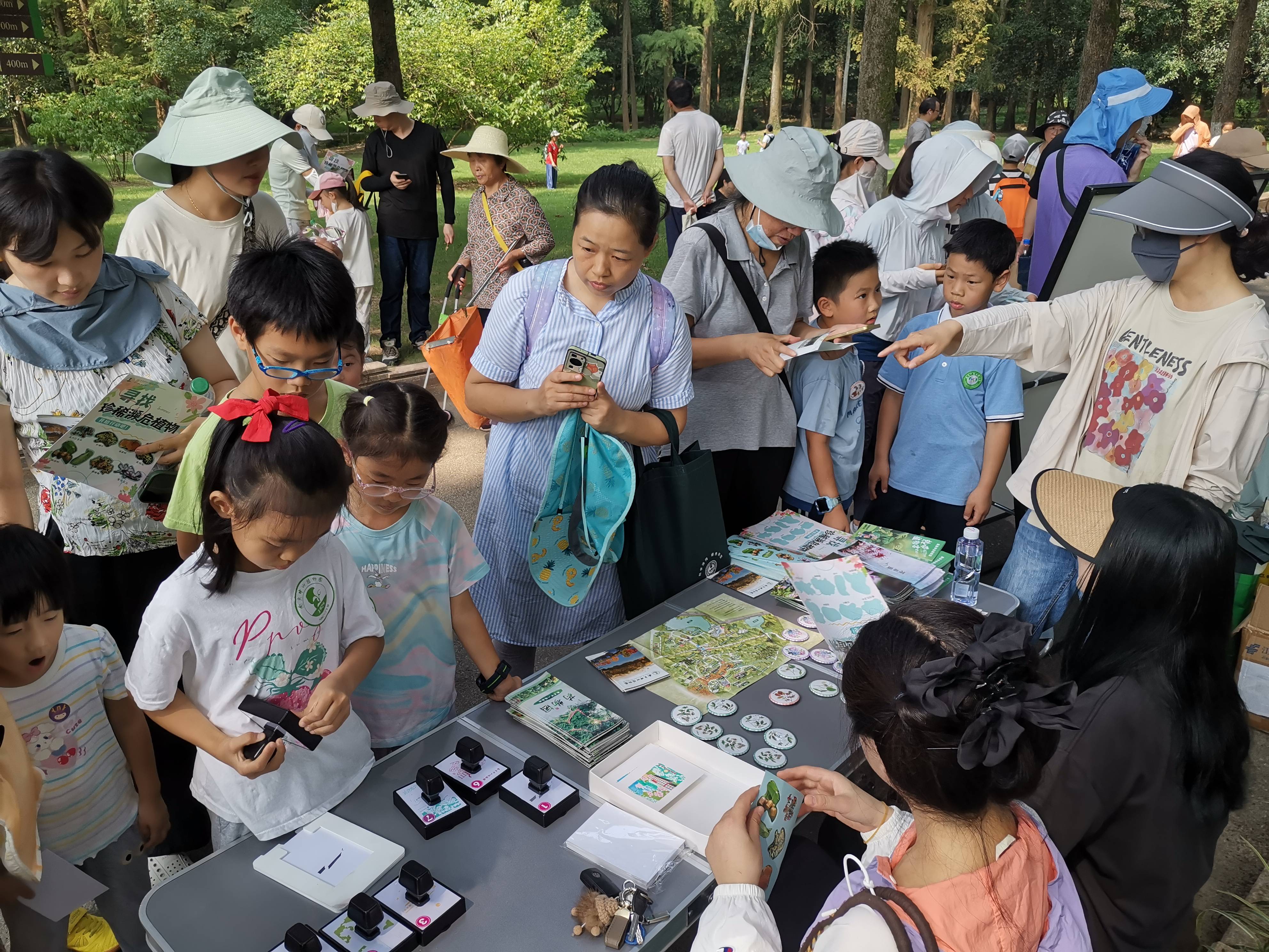 同时,面向普通游客开展了“珍稀濒危植物科普展互动问答”的广场活动。游客们通过阅读展板上的科普信息,参与到有趣的答题互动中。还可以申领珍稀濒危植物的贴纸卡片,在园区内自由探索,寻找并观察这些濒危植物。
