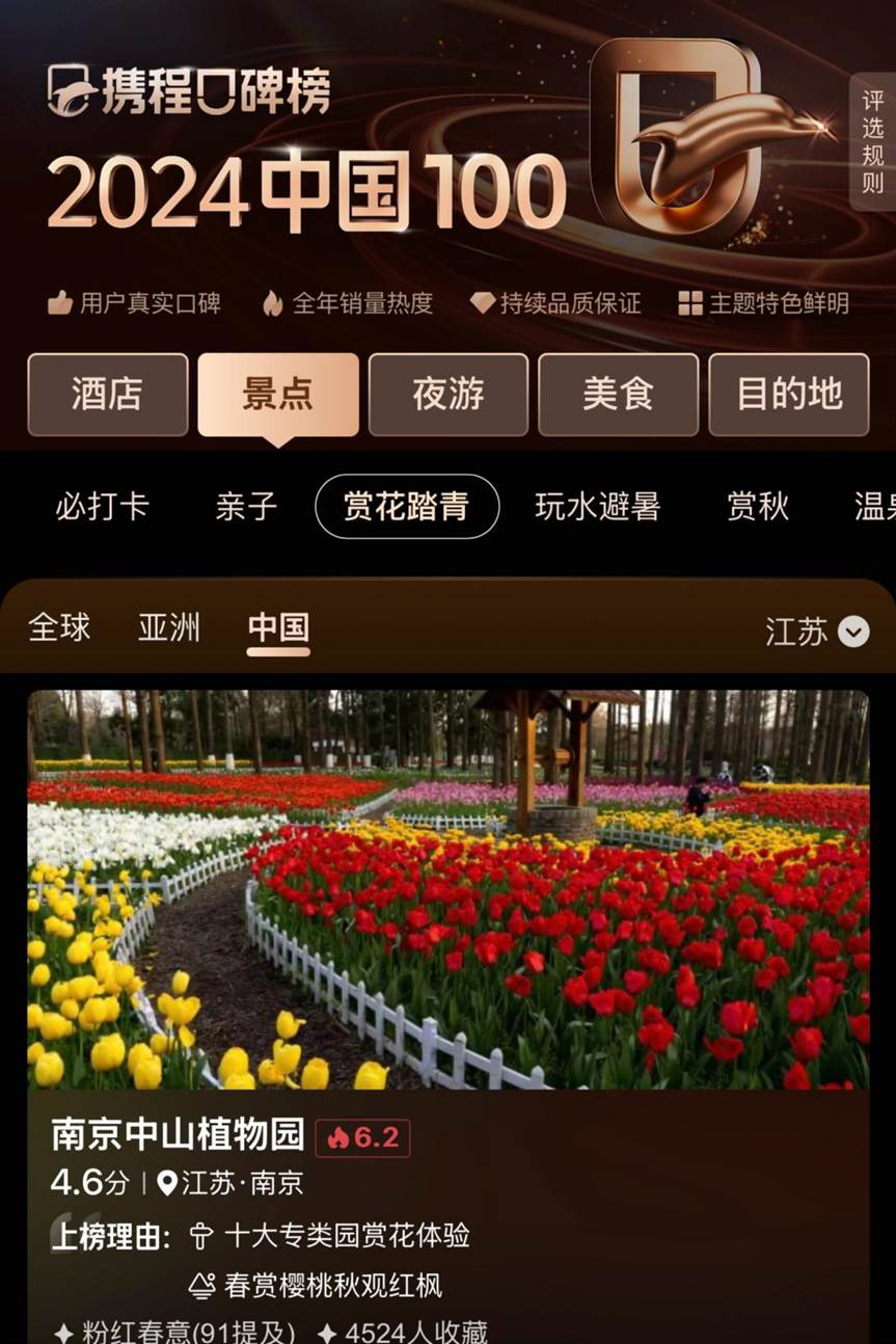 近日,携程官方公布了2024携程口碑榜—中国100年度榜单。永盈彩票荣登携程口碑榜·2024中国50赏花踏青景点榜。
