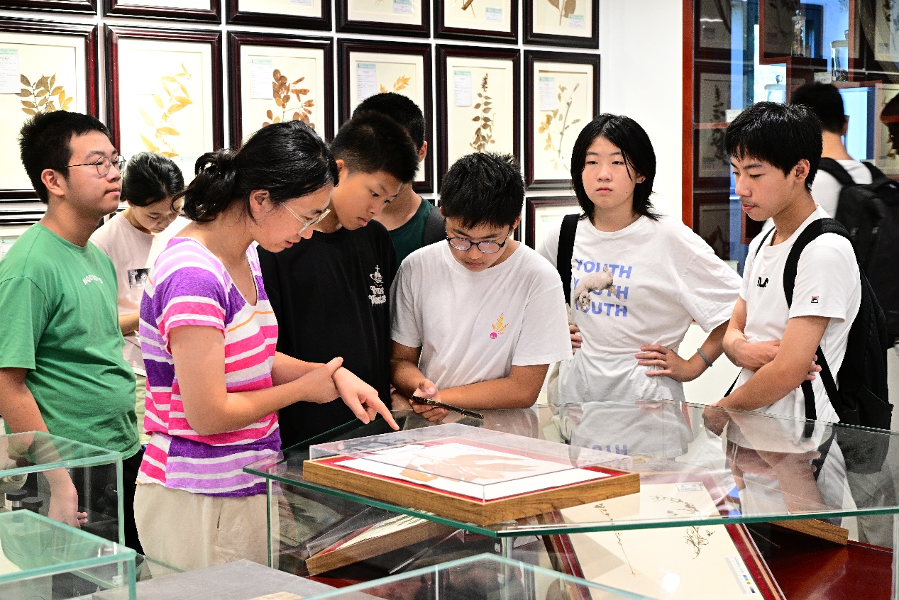 随后,在老师的引领下,同学们走进了植物标本馆。通过讲解,大家了解了标本馆的历史沿革、标本采集流程及植物分类学的发展历程,深刻认识到植物标本在科研与生物多样性保护中的关键作用,并对几代植物园专家的辛勤付出与贡献表达了由衷敬佩。