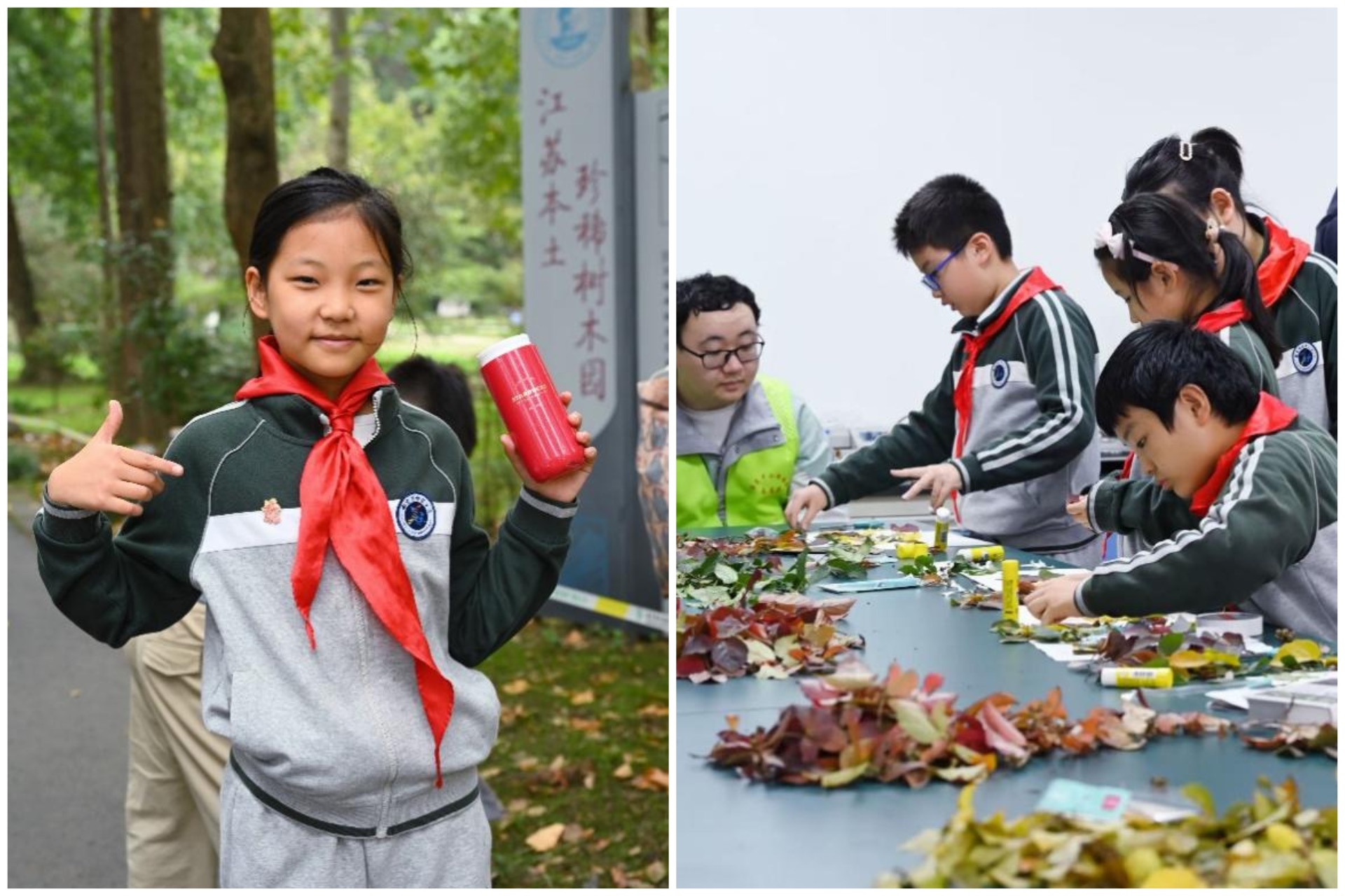 最后,为增加活动的趣味性和参与性,让学生们对银缕梅有更深入的了解,还特意安排了利用多彩的银缕梅秋叶动手创作彩叶贴画的环节,鼓励孩子们以绚丽多彩的银缕梅叶片为“颜料”,发挥无限的想象力,诠释各自对大自然美的体悟。