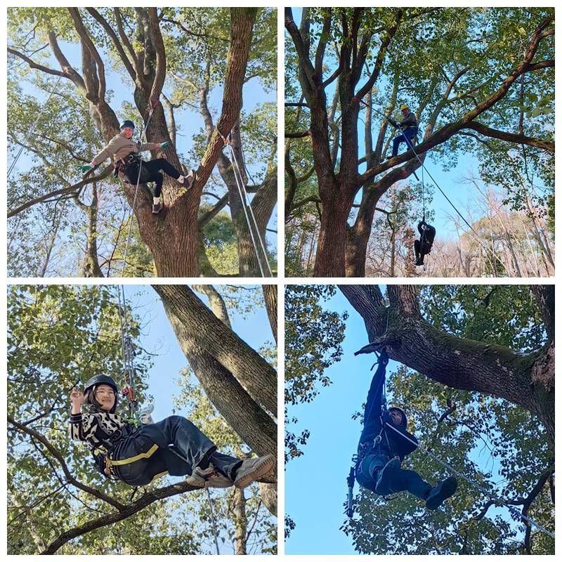 下午,活动进入实践操作环节。参训员工首先详细学习了攀树装备正确佩戴方法、安全防护要点、基础攀树技巧及应急处理流程,进一步掌握工作攀的核心操作规范。随后,大家依次开启攀树体验实践。从最初的些许紧张到逐渐找到节奏,大家在攀爬过程中克服心理障碍,感受与自然亲密接触的乐趣,更深刻体会到专注、坚持与协作的重要性。现场氛围轻松热烈,欢呼声与鼓励声此起彼伏,每位参与者都在挑战自我的过程中收获了新的专业技能和满满的成就感。