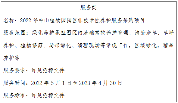 二、项目名称:2022年中山植物园园区非技术性养护服务采购项目