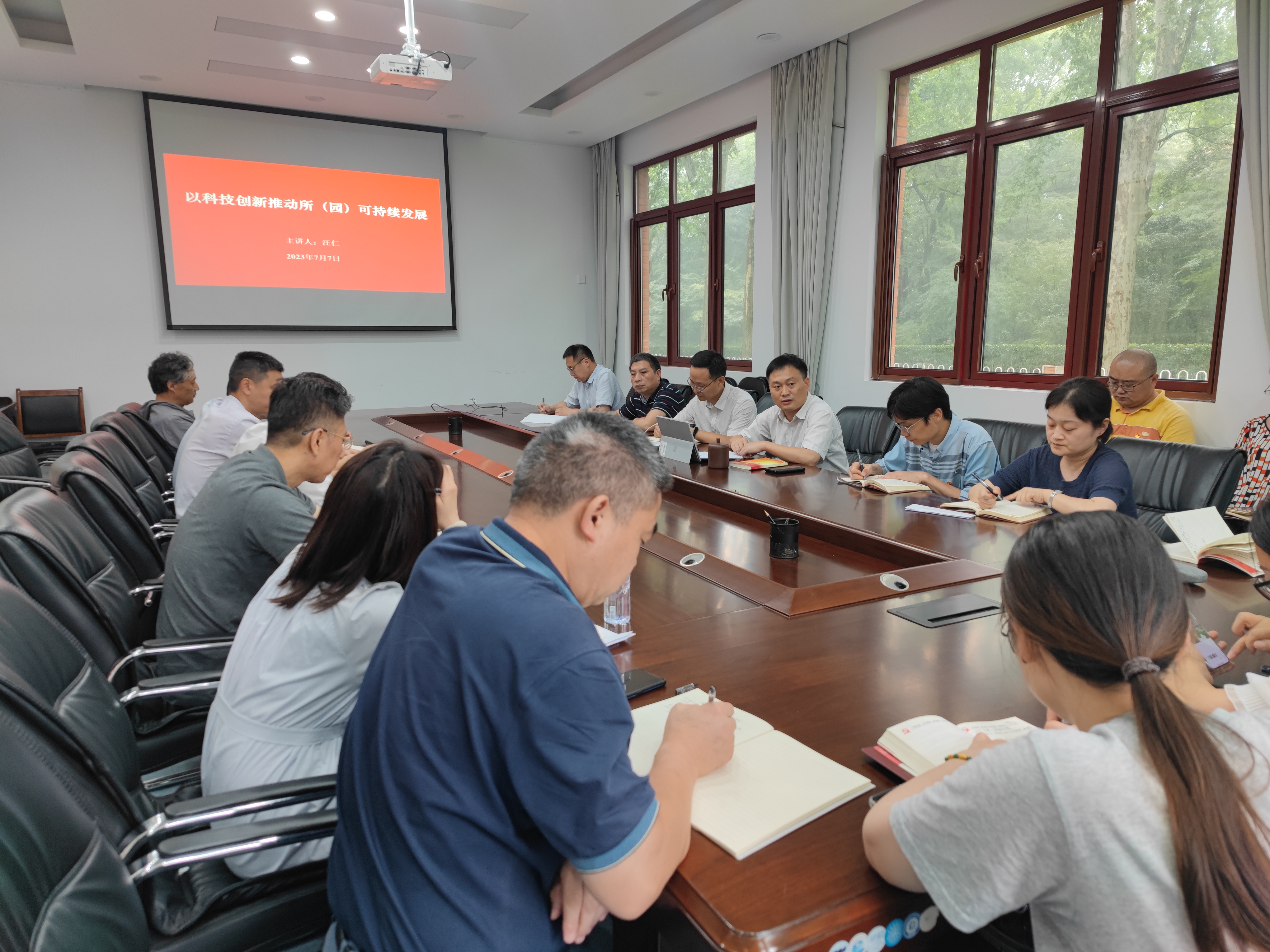 2023年7月7日,科技管理处、人事教育处、图书信息中心(支部)和天然产物化学研究中心(支部)在综合楼第四会议室联合开展了主题党课集中学习和“牢记嘱托、感恩奋进、走在前列”大讨论,四个部门的中层干部和全体党员参加了本次会议,会议由天然产物化学研究中心党支部书记单宇同志主持,副所长汪仁同志出席了会议。