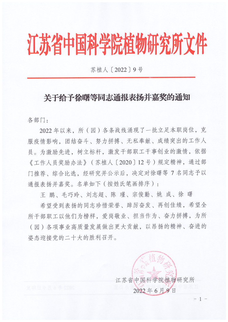 关于给予徐曙等同志通报表扬并嘉奖的通知