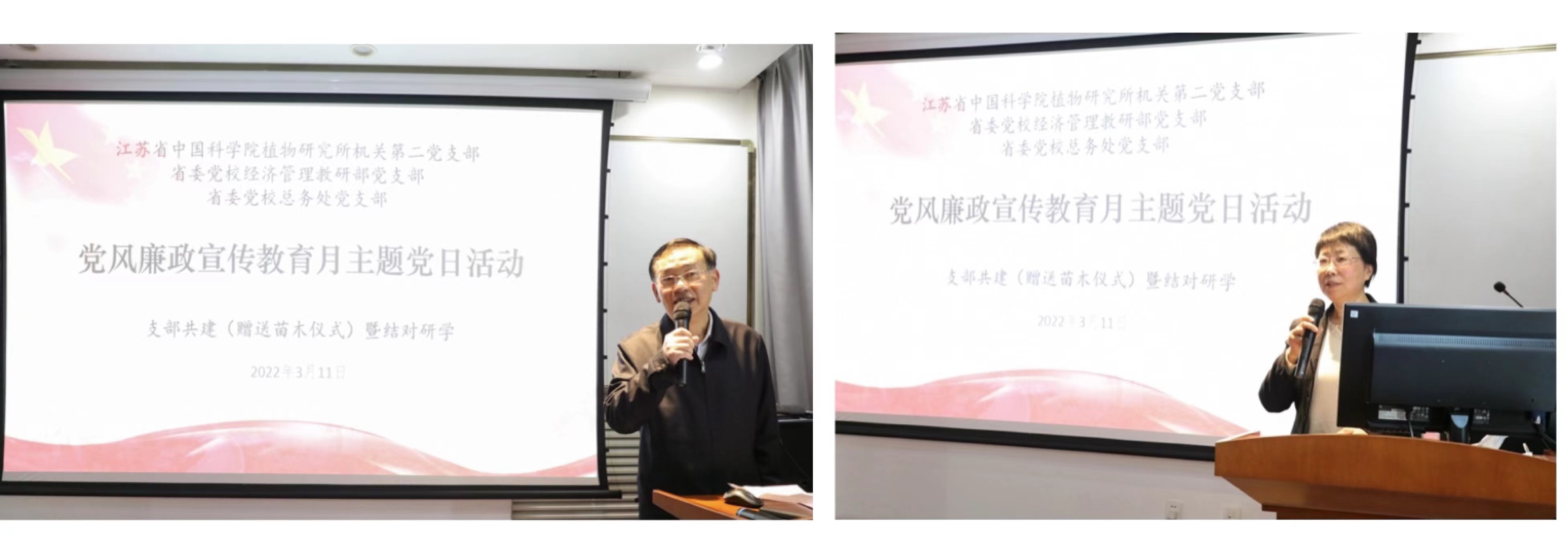 为加强廉政文化建设,深入开展经常性警示教育和廉洁提醒,3月11日下午,机关第二党支部与省委党校经济管理教研部、总务处党支部联合开展了以“党风廉政教育”为主题的结对研学主题党日活动。省委党校副校长钱学伟致辞,对我所赠送苗木表示了感谢,并就双方支部共建活动提出了希望;我所党委副书记、纪委书记江南就我所基本情况进行了介绍,并期望双方加深党建合作,促进共同发展。三个党支部全体党员参加了活动。