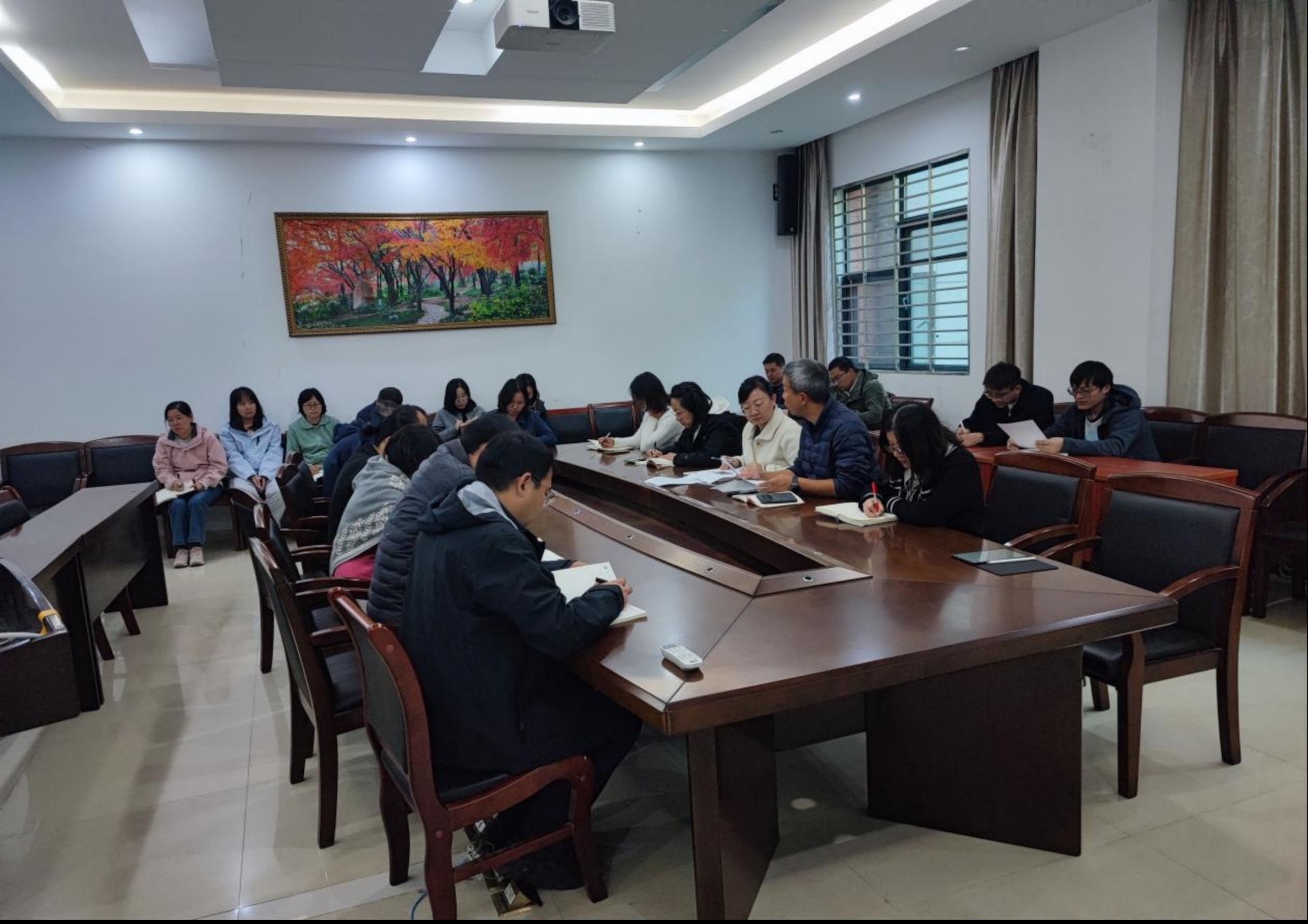为深入贯彻落实所党委工作要求,近日,果树研究中心党支部在科学楼会议室召开全体党员大会。会议集中学习了党的二十届四中全会精神,开展了《习近平谈治国理政》学习交流,并就本年度党日活动进行了安排部署。中心党支部书记、主任曾其龙,副主任朱灿灿及支部全体党员参加会议。