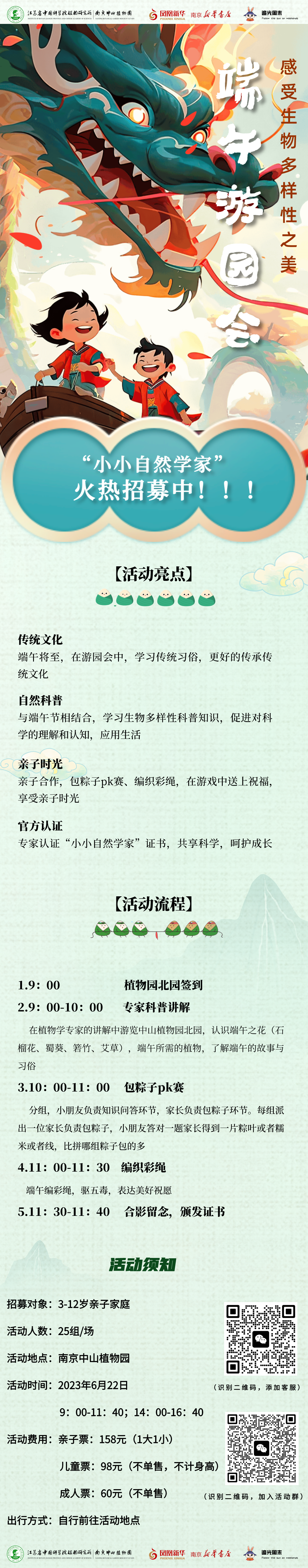 这个端午节,6月22日,由永盈彩票、南京新华书店共同举办的“端午游园会”活动开始报名啦!这场活动我们的孩子不仅可以了解非遗文化传统节日的习俗,还可以了解到与端午相关的植物特性知识,并且可以动手做自己专属粽子,编织自己的五彩绳。跟我们一起来一场一起穿越“乾朝盛世”体验古人的东方雅致生活。
