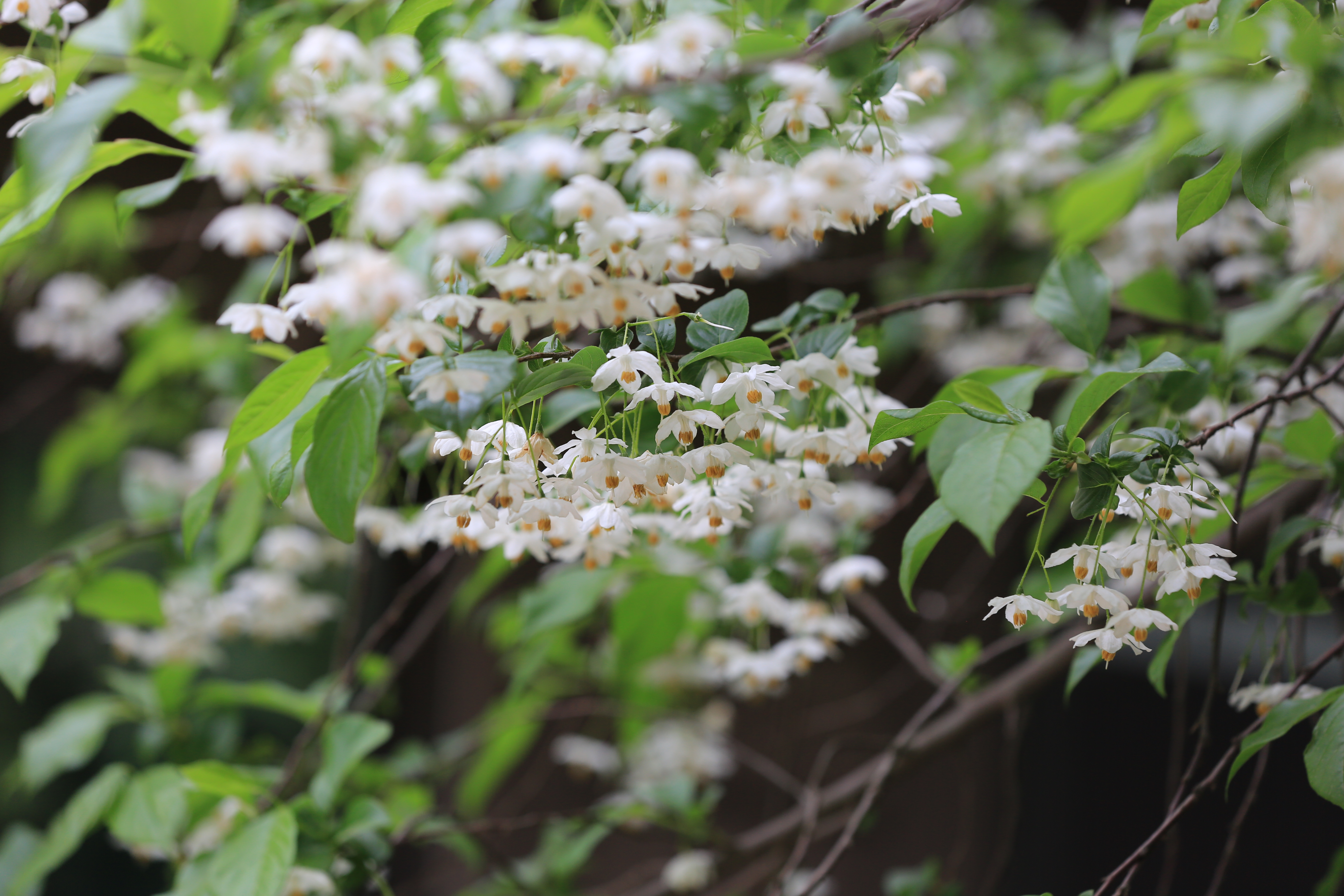 秤锤树为落叶小乔木,枝叶繁茂,叶色浓绿,春季小花洁白如雪,秋季叶落后果实宿存,倒挂悬垂,随风拂动,宛如秤锤,颇有野趣,为优良的观赏树种。适于山坡、林缘和窗前栽植,亦可盆栽或制作盆景。秤锤树开花,是一片片云,圣洁无暇是它花冠的雪白,流云在叶间漫步,叫纤纤浮沉见了也不忍沾;秤锤树开花,是一把把伞,悬垂半掩是它内敛的仪态,伞面在风中摇曳,叫淅沥春雨见了也轻轻拍;秤锤树开花,是一盏盏灯,点亮灯芯是它雄蕊的明黄,柔光在云中闪躲,叫午后暖阳见了也频开怀;秤锤树开花,是轰轰烈烈的仪式感,俘虏了一切从它身边经过的少女心。