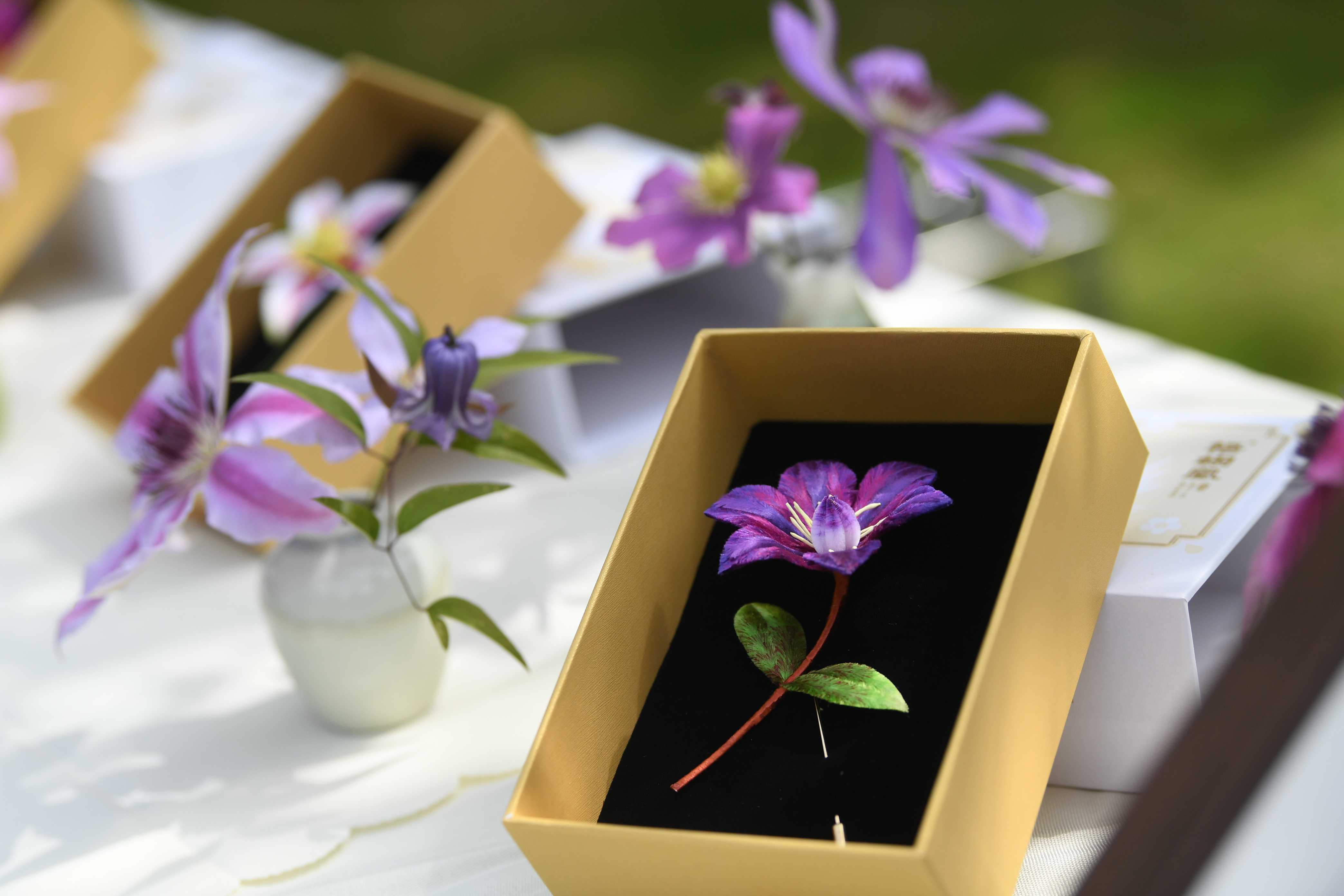 除了铁线莲的园艺布景,花展现场还通过用南京非遗绒花制作工艺,来展现铁线莲属种质资源的多样性,将庭院栽植的园艺花卉变成鬓上胸前的点缀,让花的文化更深入的融入生活中。赏花亦不能少了饮茶,江苏农林职业技术学院的茶韵农林服务团还将在2023年4月15日和4月22日这两天进行现场茶艺表演,赏花之余还可以品茗,更增雅趣。