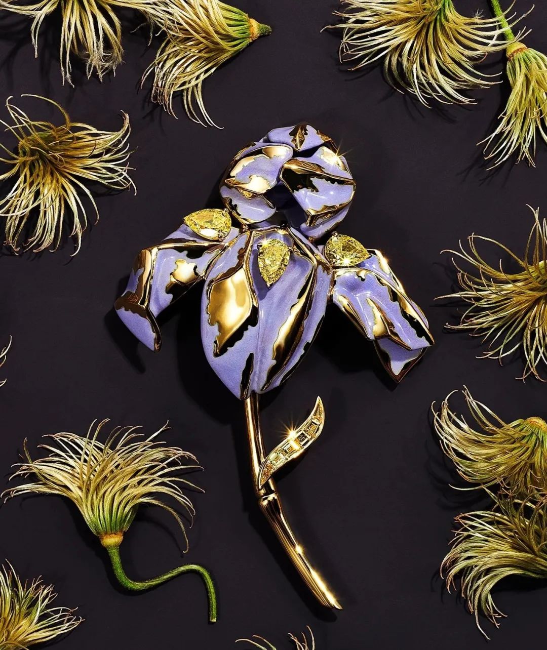 在中国古代,鸢尾因其形似鸢鸟尾部而得名,而在西方,鸢尾则被视为“彩虹女神”爱丽丝的化身,故也被唤作“Iris”。法国人偏爱鸢尾并将其视为国花,在他们眼中鸢尾代表着光明和自由,是法国皇室的象征。除此之外,鸢尾还备受艺术家的青睐,为梵高和莫奈以及Tiffany、Frey Wille和TESORO等高端珠宝品牌设计师提供了源源不断的创作灵感。