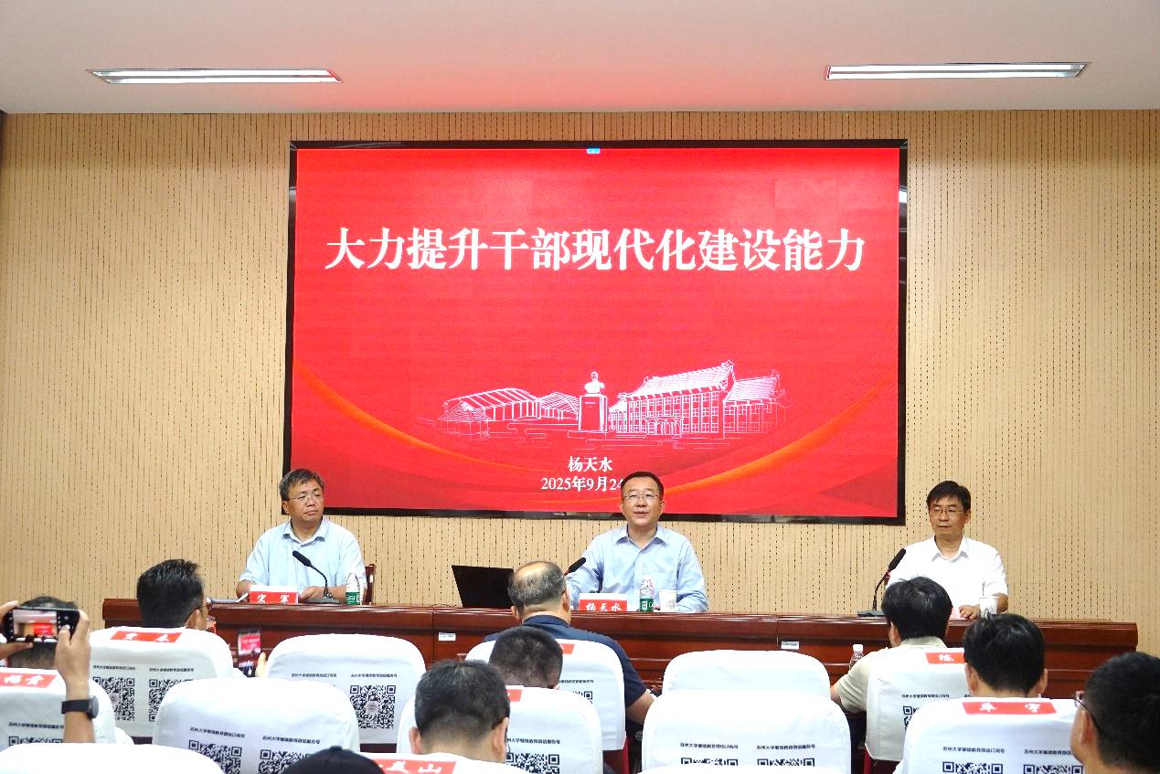 9月24日下午,培训班举行开班仪式。苏州大学医学院党委书记王欣出席并致辞,对全体学员表示欢迎。所党委书记杨天水以“大力提升干部现代化建设能力”为题作开班动员。他在讲话中对习近平总书记关于领导干部要增强“八大本领”、提升“七种能力”的重要论述进行了阐述,强调要不断强化创新思维,切实提高解决实际问题的能力。杨书记希望全体学员珍惜此次培训学习机会,专心学习,刻苦钻研,勤于思考,融会贯通,同时严格遵守培训纪律和各项管理规定,确保学有所获、学以致用。