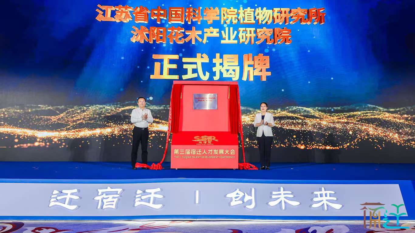8日上午,第三届宿迁人才发展大会开幕。杨天水书记和宿迁市副市长武倩共同为“永盈彩票沭阳花木产业研究院”揭牌。