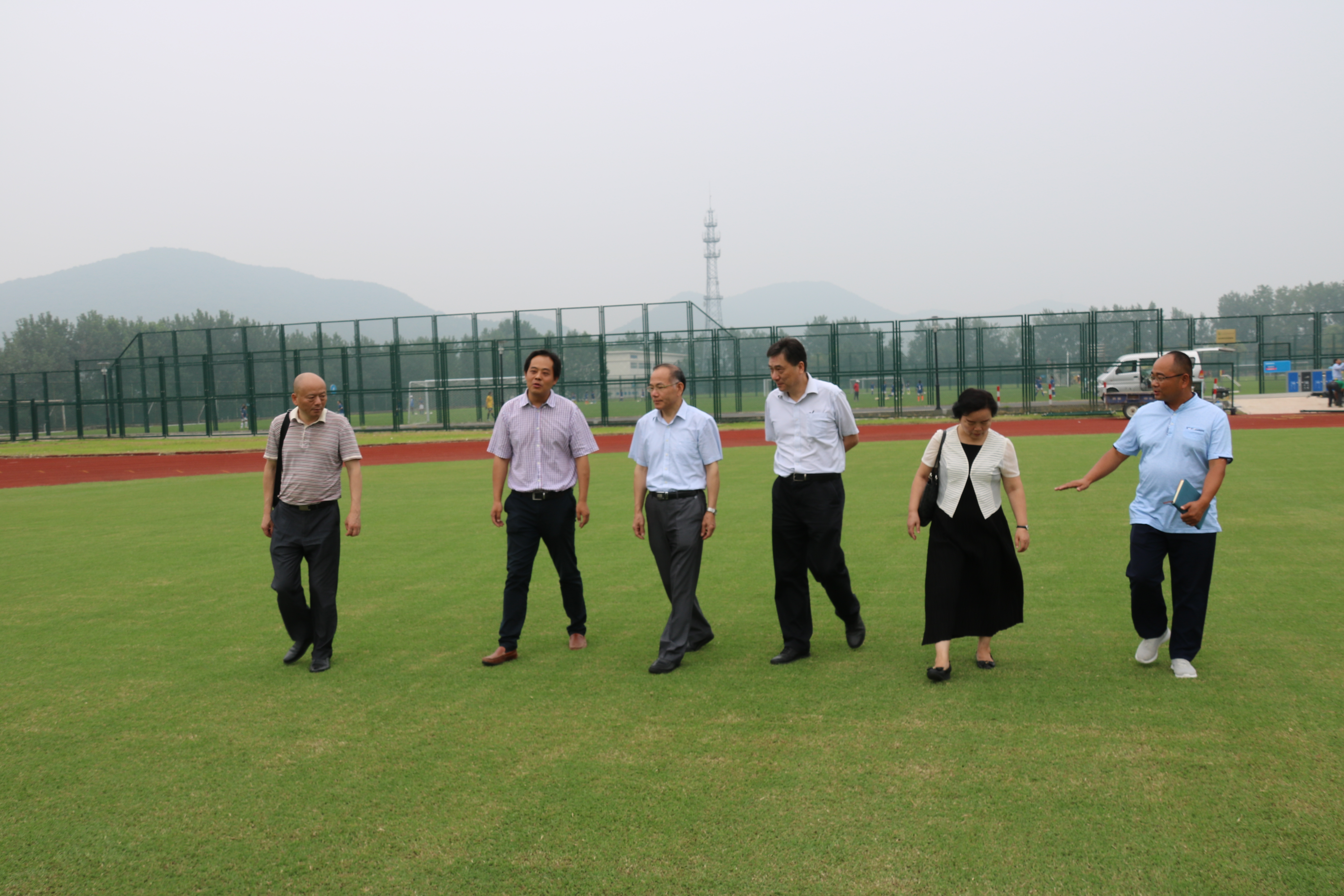 在足球训练基地,调研组实地考察了我所‘阳江’狗牙根和‘关中’狗牙根场地示范效果,目前基地10个天然足球场全部采用我所两个自主知识产权品种,收到了令人满意的效果。