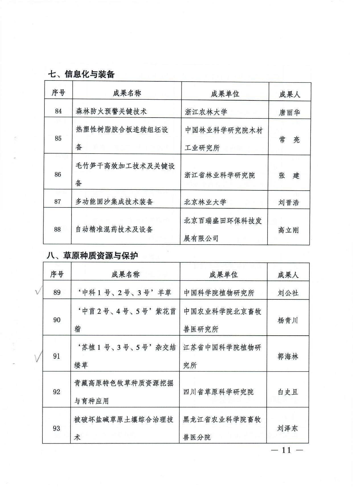 近日,国家林草局办公室发文(办科字[2019]99号),将我所研发的科研成果“苏植1号、3号、5号杂交结缕草”列入2019年重点推广的100项林草科技成果,其中,12项草业科技成果首次列入国家林草局重点推广成果,而我所是唯一的1项草坪科技成果列入国家林草局重点推广成果。