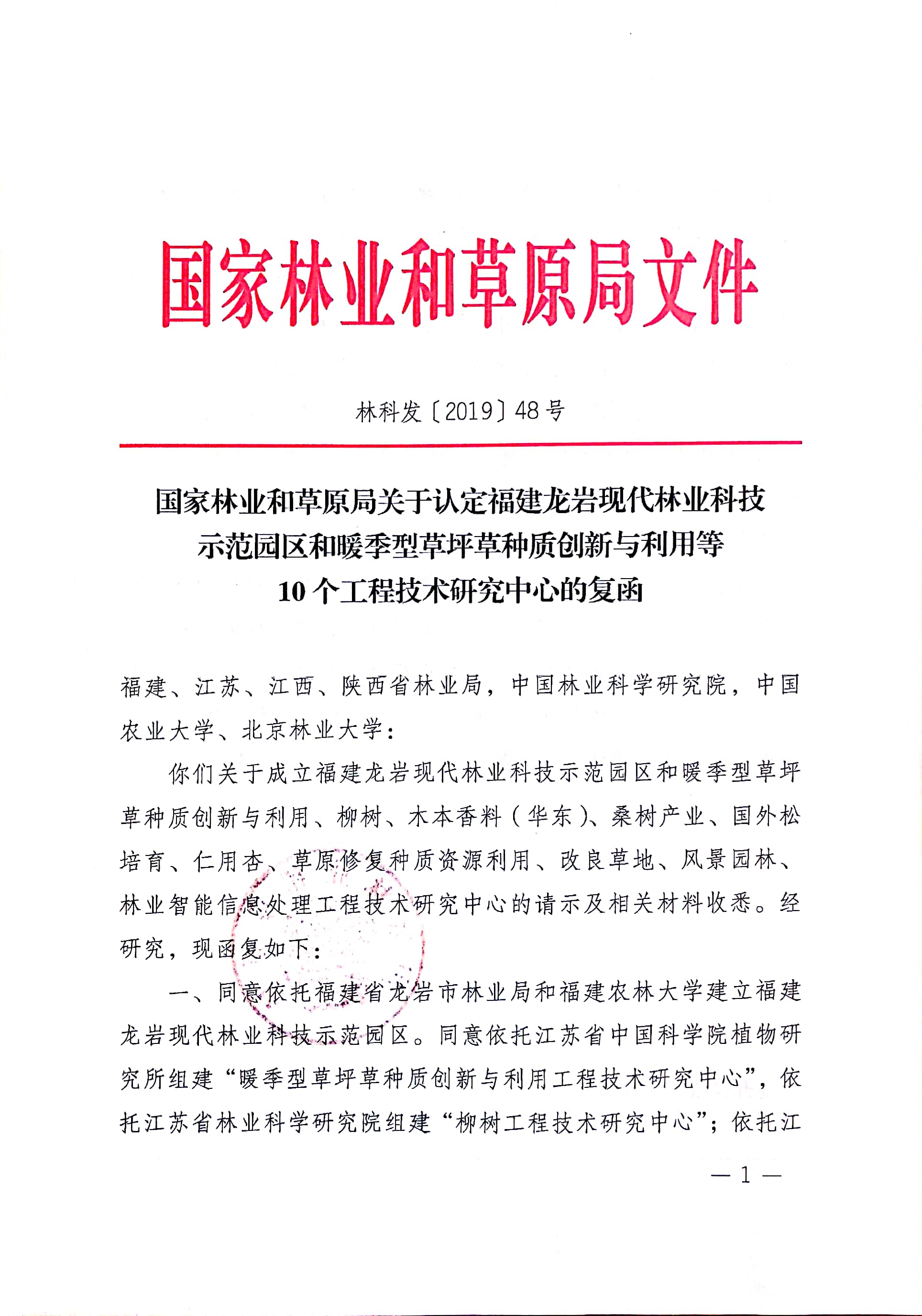 近日,国家林草局发文(林科发[2019]48号),同意依托我所组建的国家林草局暖季型草坪草种质创新与利用工程技术研究中心成立,并希望切实发挥好中心在技术创新、成果转化、人才培养方面的作用,为提升我国相关领域产业发展以及科技水平做出新贡献。