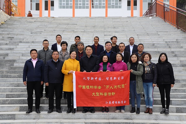 为响应中国植物学会“礼赞共和国 智慧新生活 万人进校园”大型科普活动的号召,江苏省植物学会组织专家团队,由江苏省植物学会秘书长曾虹带队,江苏省植物学会副理事长、南京师范大学教授、博士生导师丁小余,江苏省植物学会理事:江苏省中科院植物研究所二级研究员,博士生导师杭悦宇、淮阴师范学院二级教授、硕士生导师罗玉明、江苏省中科院植物研究所副研究员宋春凤于11月20日至24日远赴贵州开展“科普进校园”活动。活动得到了贵州省教育厅大力支持,同时结合贵州省教育工会脱贫攻坚教职工志愿服务“科普进校园”活动一起开展。贵州省教育厅副厅长、江苏省植物学会理事徐国华,贵州省教育厅党组成员、省教育工会主席王慧等参加了此次活动。贵州民族大学人文科技学院相关领导与老师陪同参加了活动。