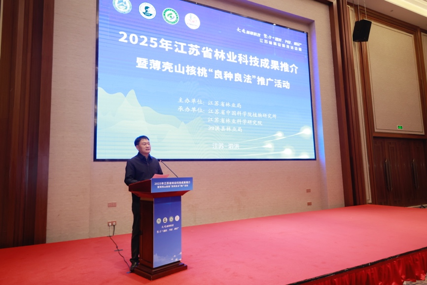 12月16日,2025年江苏省林业科技成果推介暨薄壳山核桃“良种良法”推广活动在泗洪顺利举行。此次活动由我所承办,旨在贯彻落实习近平生态文明思想,推动林草事业高质量发展,深化我所与省林业局、省内科研院所协同创新,助力林业科技成果转化落地。我所副所长汪仁出席活动并致辞。