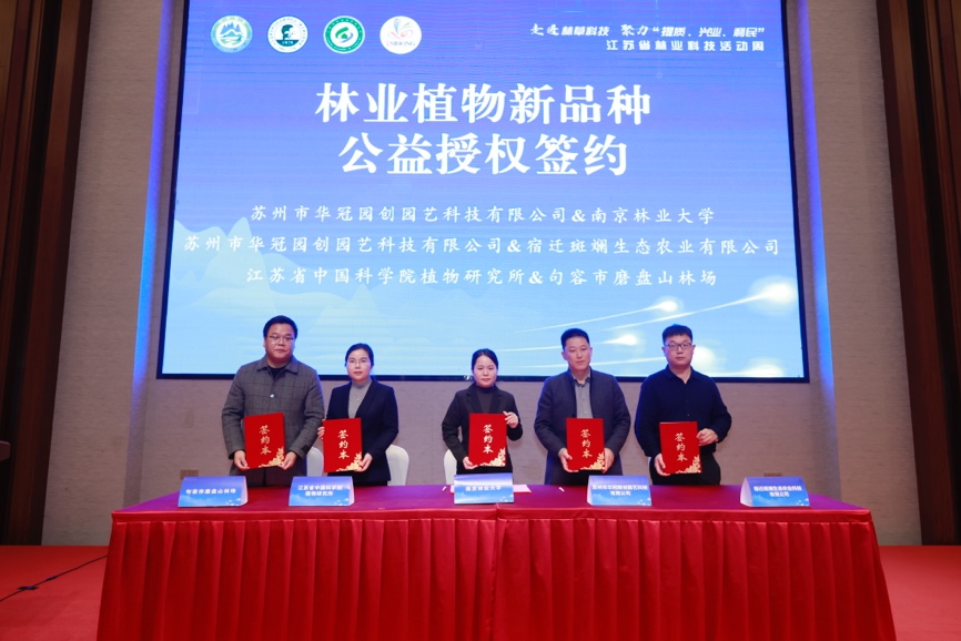 为强化林业植物新品种知识产权保护,畅通成果转化通道,科技管理处副处长常雅军现场宣读《加强林业植物新品种知识产权保护倡议书》,呼吁各方深化产学研协作,共同构建“创新-保护-转化”良性生态。同时,我所与句容市磨盘山林场完成新品种公益授权,与江苏成业农业科技有限公司签署薄壳山核桃深加工技术转化协议,这标志着我所在林业科技成果市场化应用与公益化推广方面实现双突破。